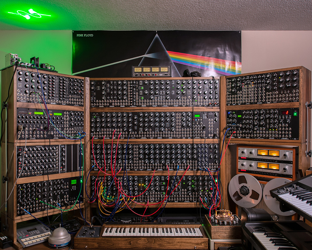 My modular synthesizer now consists of 127 modules including Analog Metropolis, Barton Musical Circuits, Blacet, Bridechamber, Catgirl Synth, ElectricMusicStore, Encore, Flight Of Harmony, Ian Fritz, Jürgen Haible, Rob Hordijk, Larry Hendry, Magic Smoke Electronics, Moon Modular, MOTM, Natural Rhythm Music, Neil Johnson, Oakley Sound Systems, Synthcube, Synthesizers.com, Synthmodules.com, YUSynth, and about two dozen of my own designs.