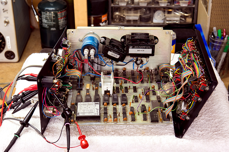 The mechanical construction is a bear to work on. All the primary wiring is exposed and the cabling to the front, side, and rear panels is all soldered to the PCB so it can't be removed. You can remove one side and bottom and unscrew the other three sides to mostly access the PCB. Turning it over to solder and unsolder is difficult as everything is loose. The exposed primary on the power switch is very close to the PCB and some front panel wiring is bare so one has to always check that nothing is shorted.