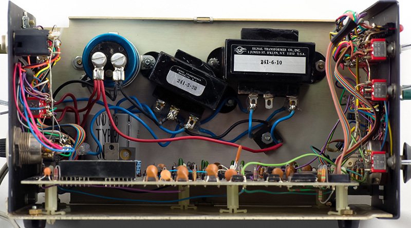 I don't own a SCI Model 800 Sequencer but was sent a 1976 with serial number 0041 for repairs. I am documenting these vintage instruments since there is so little information available. This early version has 6 memory ICs for a 24 bit word with 10 bits of resolution for the CV and 12 bits of timing information. It uses a Zytex ZD431 DAC module.