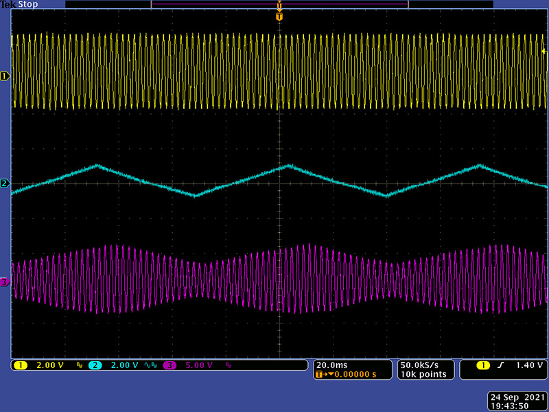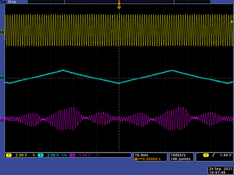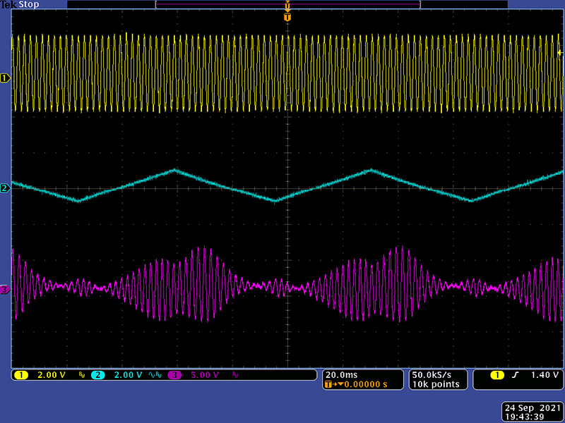 A time-variant module like the AR-329 is difficult to show with static scope images. These three images show various exponential triangle CV with no resonance.