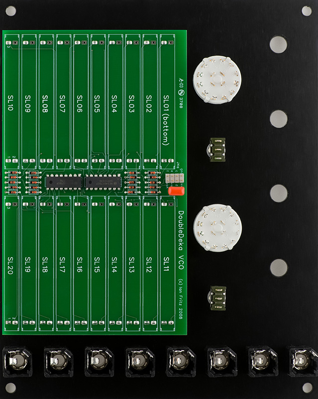 I finally got around to building an Ian Fritz DoubleDeka VCO and bought the Bridechamber complete kit. There is a Electro-Music The DoubleDeka Ultrasonic VCO topic for this module. I changed the chicken head pointers to Moog-style knobs and the round to flatten style switches.