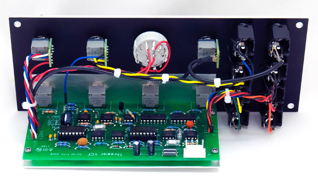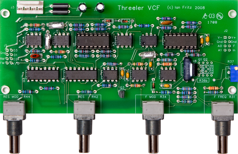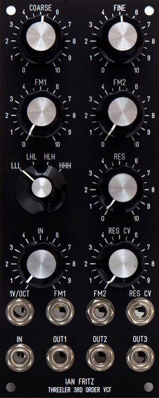 I built an Ian Fritz Threeler VCF module from Bridechamber as discussed on the Electro-Music and on the Muffwiggler forums. I like the various modes that this filter offers and it has really crazy performance.