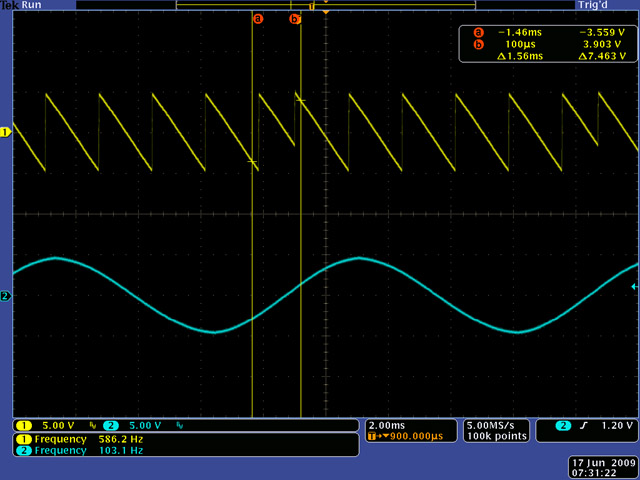 the sign of the linear FM voltage determines the polarity. In this scope image I