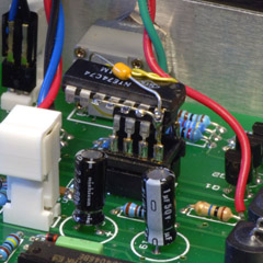 | Here is a side photo of the PCB showing the jumpers installed. | |