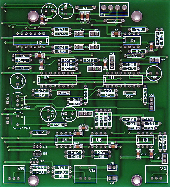 I purchased a Bridechamber Rev3 PCB for the Wogglebug as discussed on the Electro-Music forum. There are fourteen 1206 surface mount capacitors on the topside of the PCB.