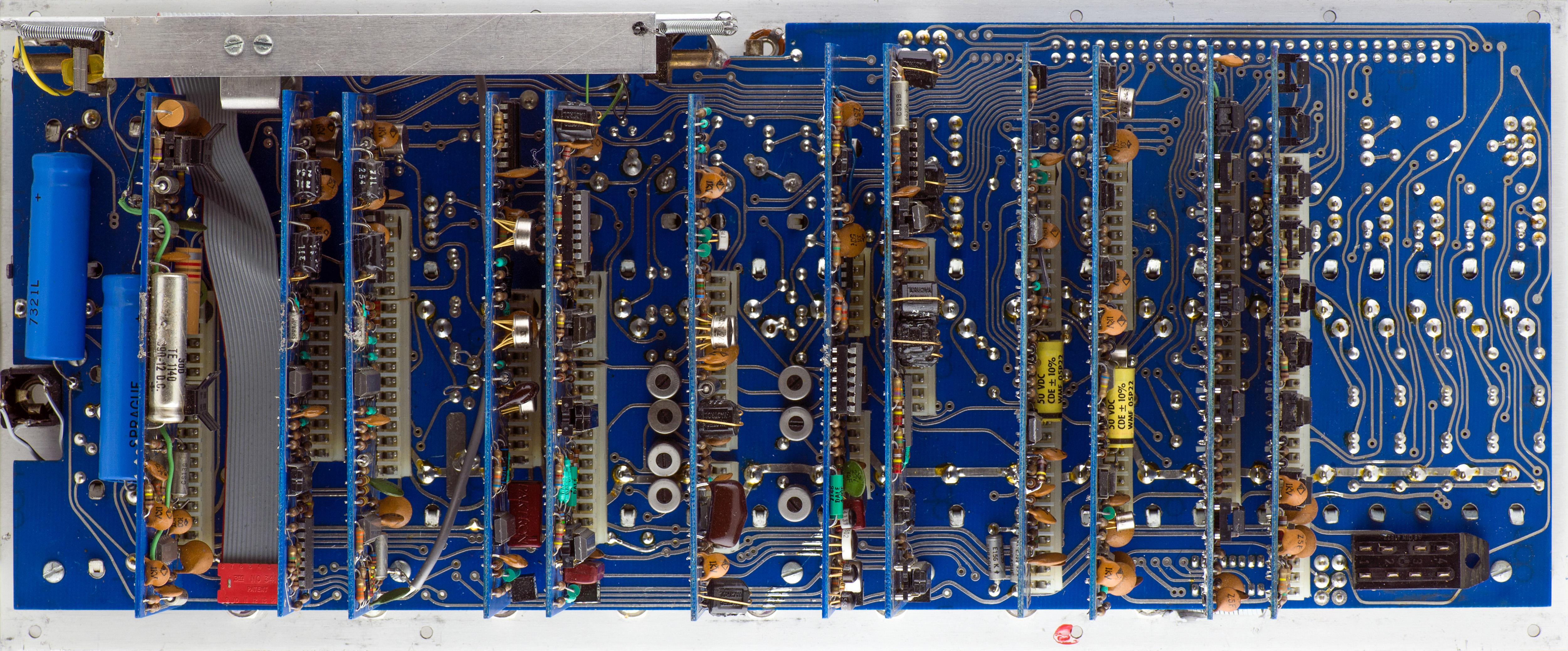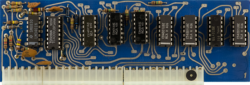 Card 1 is the 5 stage sequencer. The black washers are glued on as possibly a pin 1 marker.