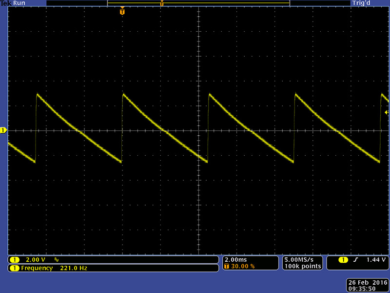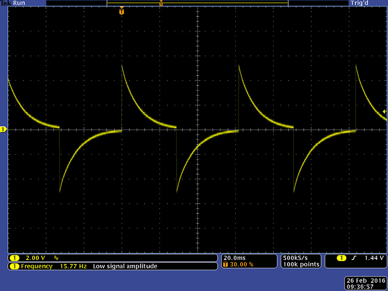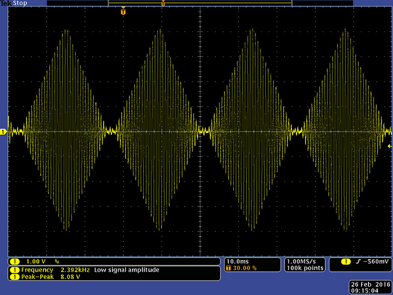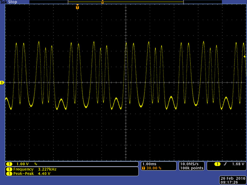 At 16 Hz the modulation oscillator waveforms are quite distorted.