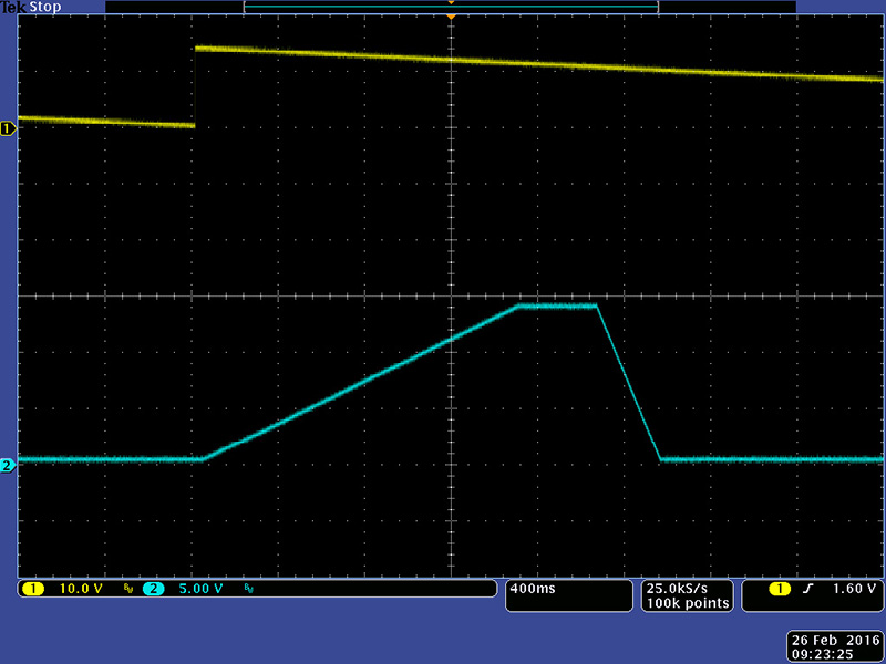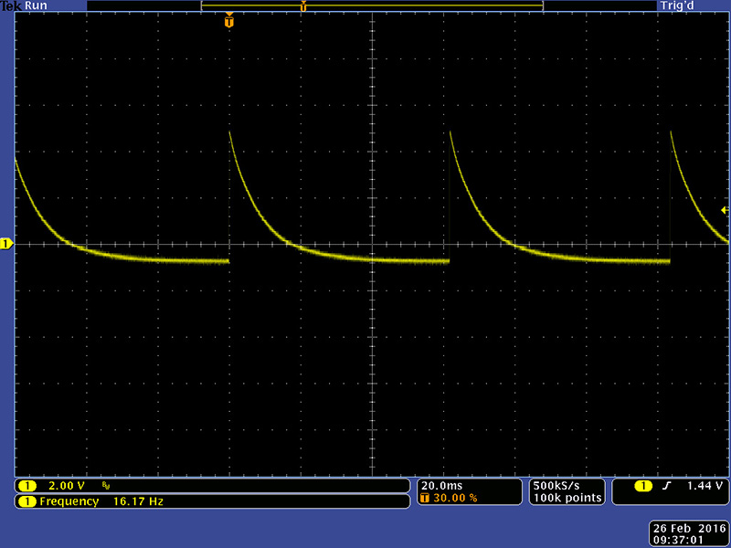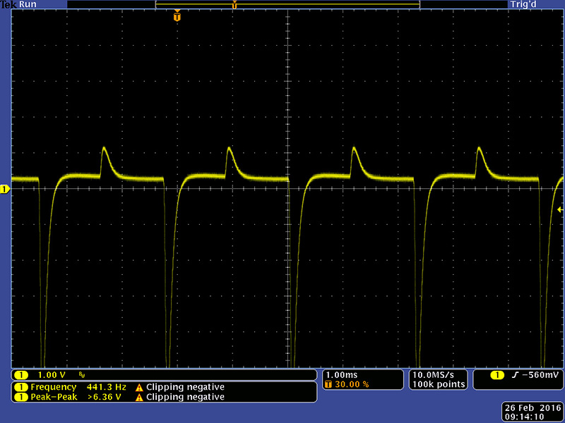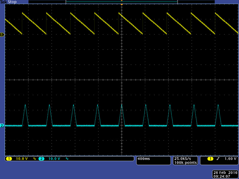 This image shows the pulser driving the envelope generator with an attack and decay.