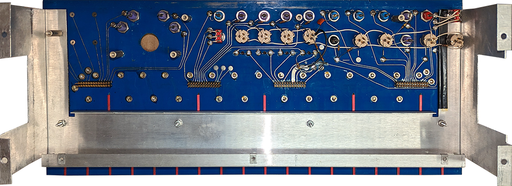 I was sent a a Buchla Music Easel for calibration and repair that consisted of an early version 208 and this 221 Kinesthetic Input Port. This module is quite interesting in that the entire module will bend (e.g. shift) side to side as a modulation source. This module was fully functional so I did not remove it from the cabinet.