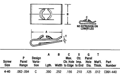 Note that Buchla used a Tinnerman C991-440 which better fits the narrow mounting rails. The C991-440 are 0.252" wide while many other U clips are 0.315" wide.