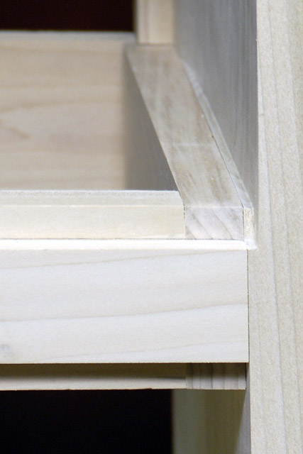 This photo shows the notch detail of the upper row.  You can see where I routed the upper portion of the cabinet about 8 inches deep.