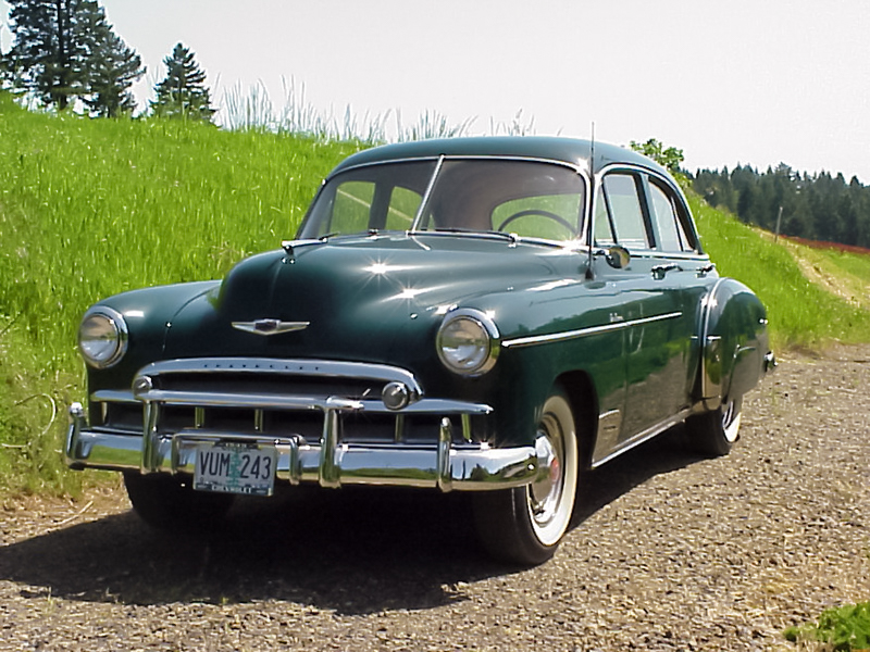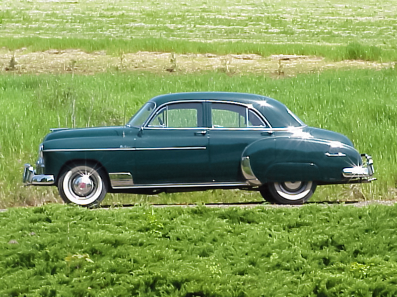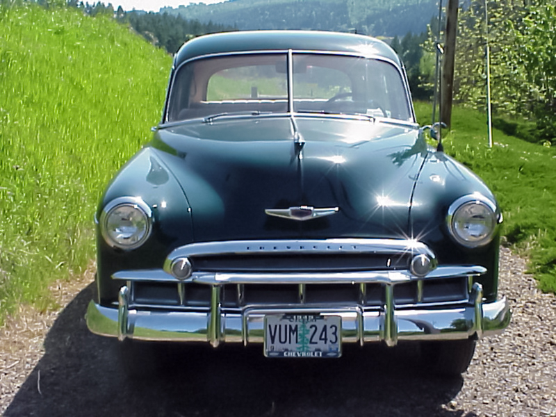 The 1949 Chevrolet from Grass Valley had 55,000 miles on it when I purchased it. It was repainted but the rest of the car is in original condition. The wide-whitewall tires are radial which makes driving a lot more comfortable.