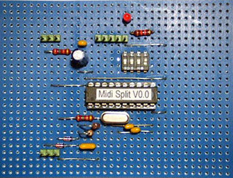 Alan requested help for a portion of his synthesizer project.  I adapted the software for my MIDI processor to provide a custom split mode function.  Three switches define the split key, one switch enables the split mode, and four switches set the MIDI channel for keys below the split note.  I sent Alan programmed AVR processors and he built the hardware and performed a system verification of the functionality.