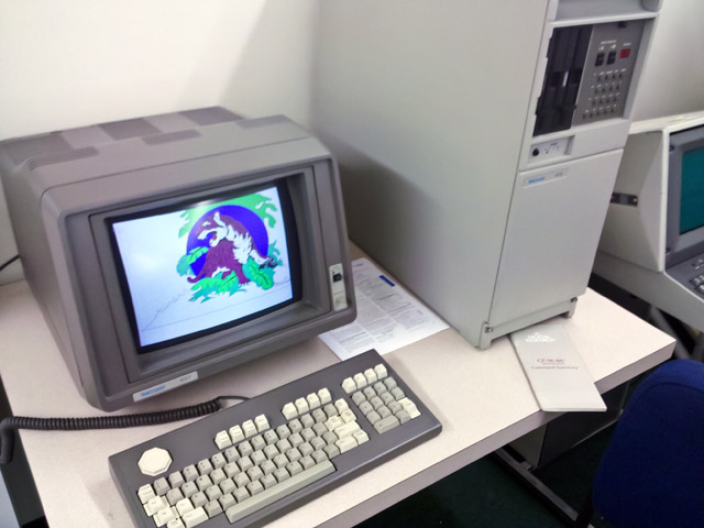 And the good news is the keyboard was fully functional! Here is the 4107 color graphic terminal displaying images from the 4170 local graphics processing unit.