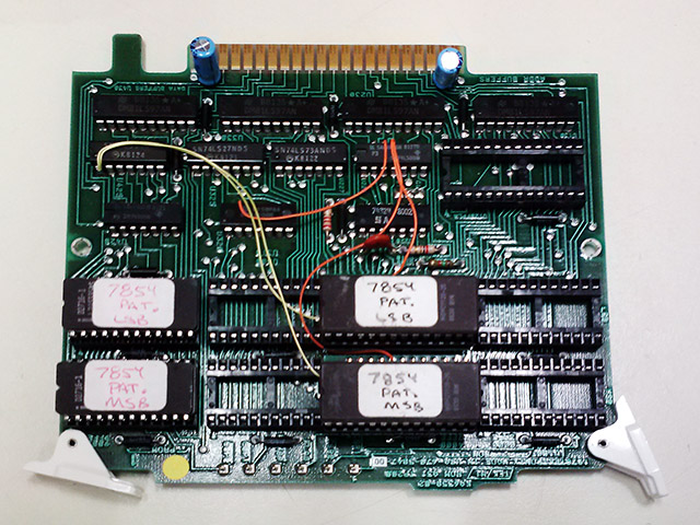The Tektronix 7854 Oscilloscope with Digital Storage proved more of a challenge. There are two pairs of ROMs stacked very close together so there was insufficient room for four adapter boards and the board to board spacing and the PCB ejectors limited the vertical height. I could fit a two adapters at U200 and U210 so I had to copy a good set of ROMs and combine them into a pair of larger 27128 EPROMs. I had to solder individual pins to minimize the height (e.g. not a strip of pins) and use a low profile socket for the EPROM although it really should be soldered directly to the adapter. I had to fly a wire for A14 to the 27128 and combine the two chip select signals into one. Unfortunately the oscilloscope would not operate without the patch EPROMs and FPLA which we did not have but I did find the binary files which include the FPLA patch here. This eliminates the need for the FPLA! Programming up a pair of 27128s and a pair of 2716 patch EPROMs brought this oscilloscope back to life. Programming and PCB modifications are documented here updated.