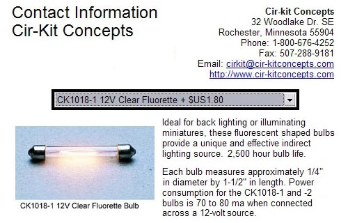 The Dynaco FM-5 tuner that had one lamp burned out. All of the replacement information I found on the web indicated that replacement lamps are not available. Well, I found some! They are 12 volt fluorette lamps and I have found them at several doll house suppliers. My one good original lamp measured 140 mA and these replacements are 80 mA but appear just as bright. I bought the clear CK1018-1 clear lamps and my ends caps were straight instead of the conical end caps as shown in the photo. The overall bulb is the same size and fits perfectly.