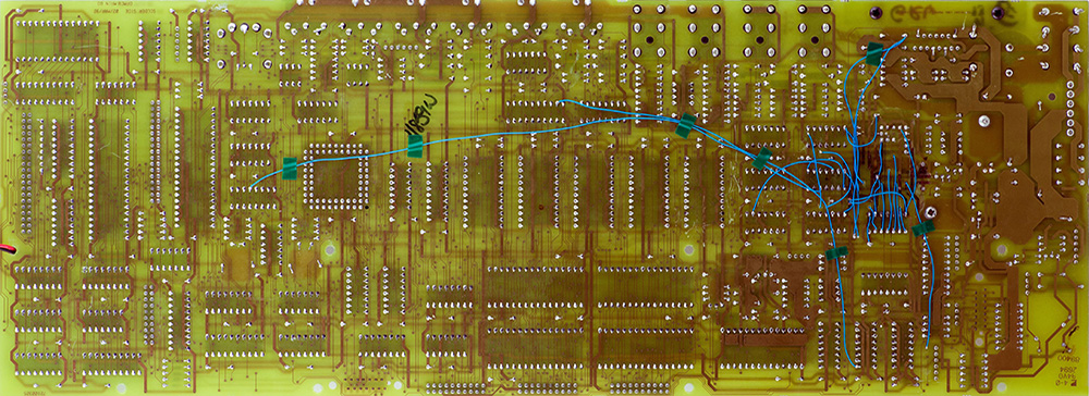 I've repaired a couple of these successfully, and failed at others. They are not fun and are very tedious. I have seen boards where the vias are corroded 6 inches away from the battery. The caustic leakage seems to follow the solder mask and then attack unmasked vias. These two images show the number of wires I have had to put on the PCBs. I drill out the bad vias and route the wire through the holes. That way I can tell if I have patched that particular trace.