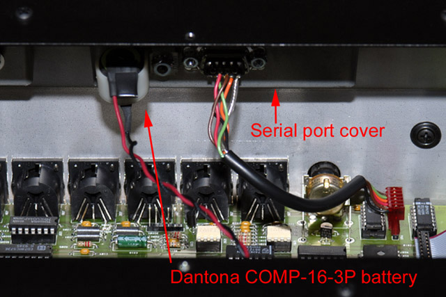 I replaced the battery with a Dantona COMP-16-3P nickel metal hydride. It was the same form factor for mounting on the PCB but I moved it to the rear of the serial port cover. The unit powered up and the display was mostly correct except the preset names were all smiley faces. Holding '0' and 'Enter' keys depressed while powering on initialized the non-volatile memory correctly.