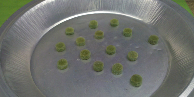 I was apprehensive that parallel knife blades would really cut the foam but it worked quite well. I used two #11 X-Acto blades held with a C clamp on each side of a 0.20" thick nut. The knife blades are not very long so you can't cut through thick foam. I used 0.5" foam which worked fine. I used a standard 7/16" hole punch to cut the foam although I found I needed to sharpen it considerably to cut clean edges. I cut the foam on a smooth board using a slight twisting motion. I glued the clear plastic pad onto the foam and then glued the foam on to the aluminized mylar. The only issue I found was that application of contact cement on the aluminized mylar caused it to curl up so I held it flat with a pick while applying the cement and then would press the foam onto it while sliding the pick out.