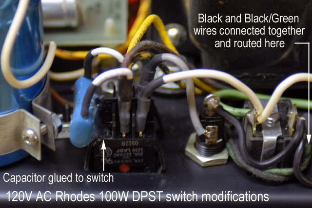 120V AC Switch Modification Notes: Caution - this modification deals with primary high voltage wiring. On no account should this modification be attempted if you are not familiar with safe connection of high voltage primary wiring and insulation. Warning - this modification is for 120V AC primary only. 240V AC requires a different modification.