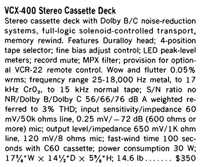 I bought this cassette deck new in 1983 for $269. This review is from the 1984 HiFi Stereo Review Tape Recording Guide.