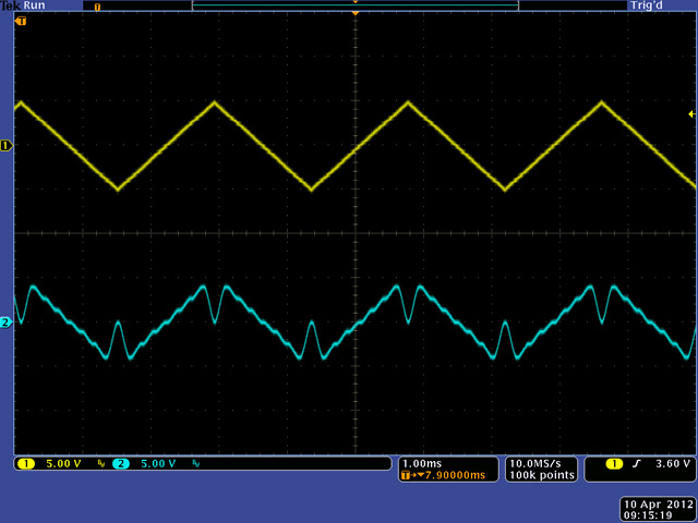 This example is the same setup except I have set In 1 and In 9 to zero to produce the notch at the peaks of the triangle.