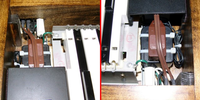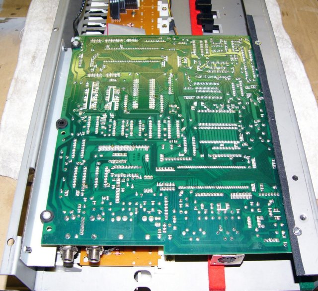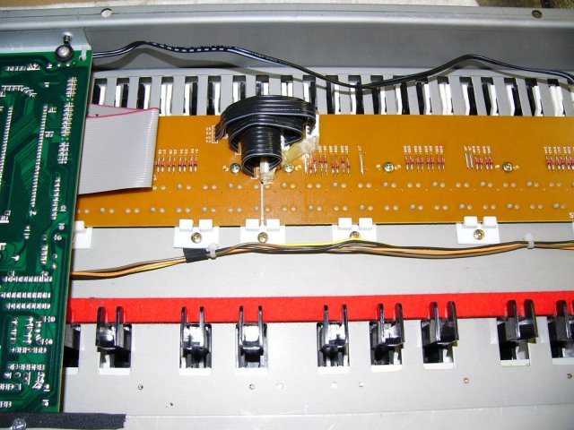 I ran the cables for power (upper black) and for the modulation and pitch wheels (middle) across the keyboard. This is a heavy and well built keyboard!