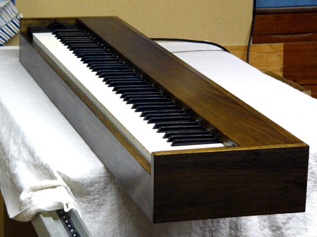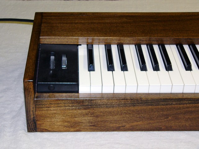 Here is the completed keyboard left side showing the pitch bend and modulation wheel panel. This keyboard is so long it is hard to photograph.
