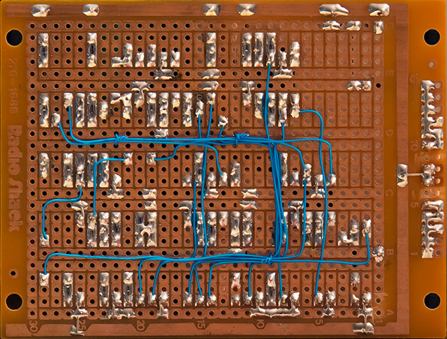 I looked at the Marc Bareille Polivoks PCB but decided to just hand wire a proto board since I didn't know how the NTE888M would perform. Since I did this module there is another PCB available at the topic [ORDER] Polivoks VCF clone kit on the Muffwiggler forum.