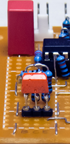 I obtained the Russian УД1208 and KP140УД85 op-amps and the KT315Г transistor. I used sockets for the op-amps and transistor so I could swap the NTE888M, TL071 and 2N3904 with the УД1208 and KP140УД85 op-amps and the KT315Г transistor to compare performance. The KT315Г transistor has flat leads so I soldered small wires to the leads to fit the socket.