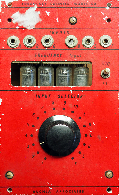 The 150 is not actually Don's complete design, more than likely it was a one-off commission for what was to be Owsley Stanley's red paneled system. Instead of designing a TTL logic based frequency counter from scratch, Don opted to hack apart a HP Frequency Counter and repurpose it for the module.