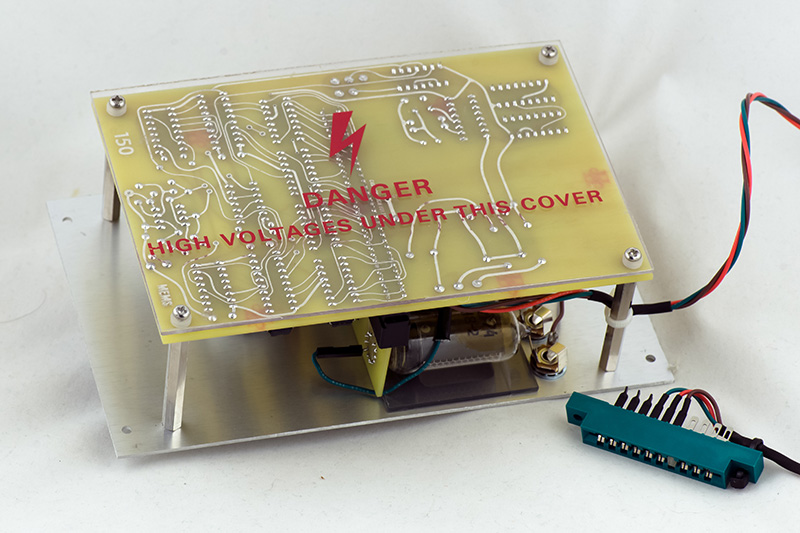 This photo shows the rear PCB and the Nixie PCB.