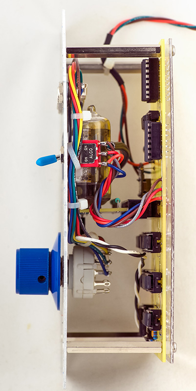 The MEMS replica is a modern design utilizing four Nixie tubes. The input selector is limited to the 6 front panel jacks but the module is true to appearance otherwise.