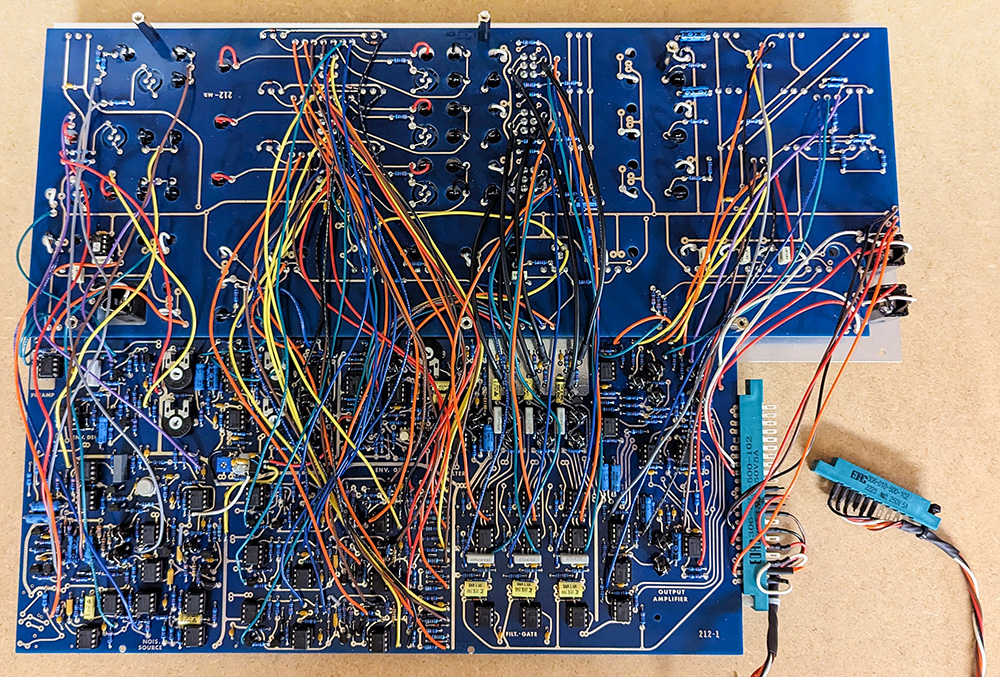 The PCB to PCB wiring is intense and not for the faint of heart. I used shielded cable for the Low Pass Gate. One advantage is you can test each sections separately.
