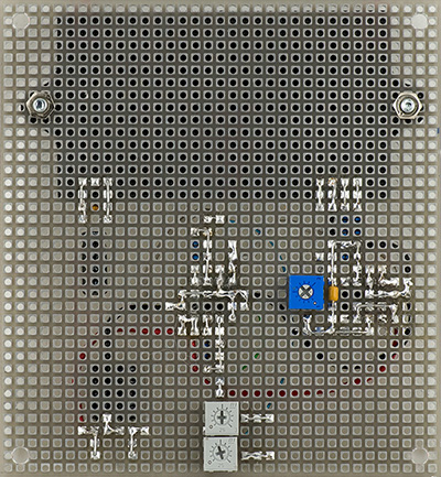 I am in the process of building a MEMS version of the 212 Dodeca module. There is a lot of front panel wiring on this module so MEMS designed a panel board which also contains the Electric Druid noise IC. There still is a lot of wiring to this PCB, but it is much simpler. I bused the grounds and parallel jacks to minimize the number of wires I had to align with the panel. I also chose to mount all the components on the rear of the PCB for access.