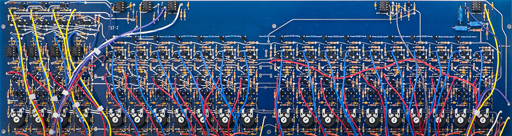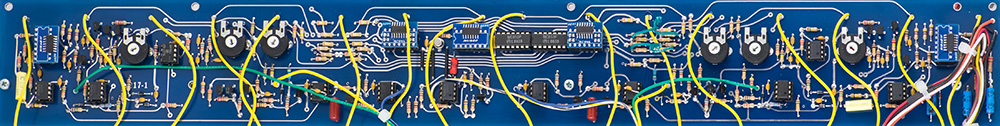 There are a lot of wires and calibration trimmers in this dense module.