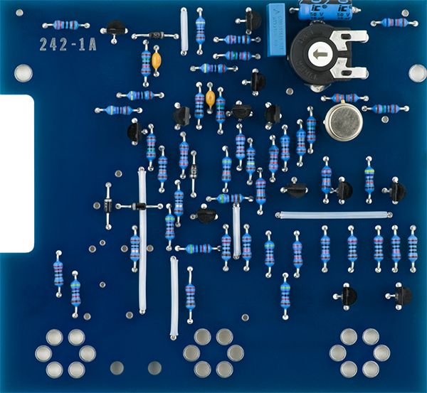PCB 1A is the Pulser. The PCB has a notch for wiring from PCB2A to wrap around to the front panel. The Dialco switches solder directly to the PCB which makes it captive to the front panel. My Otto switches wire to this PCB so it can be removed easier for service.