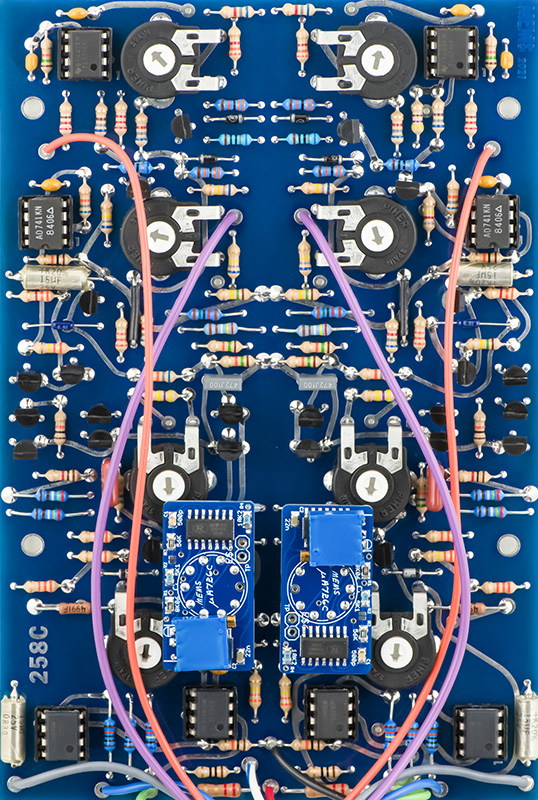 This MEMS 258C is a faithful recreation of the 258C Dual Oscillator with a panel PCB for easier DIY construction.
