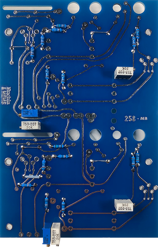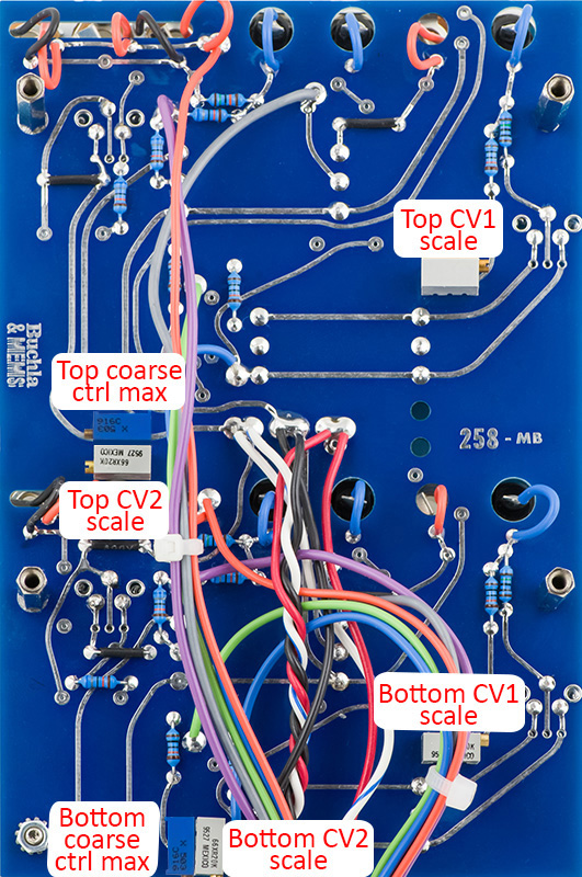 The original 258C has no scale trimmers. The panel PCB has scale trimmers for CV1 and CV2.