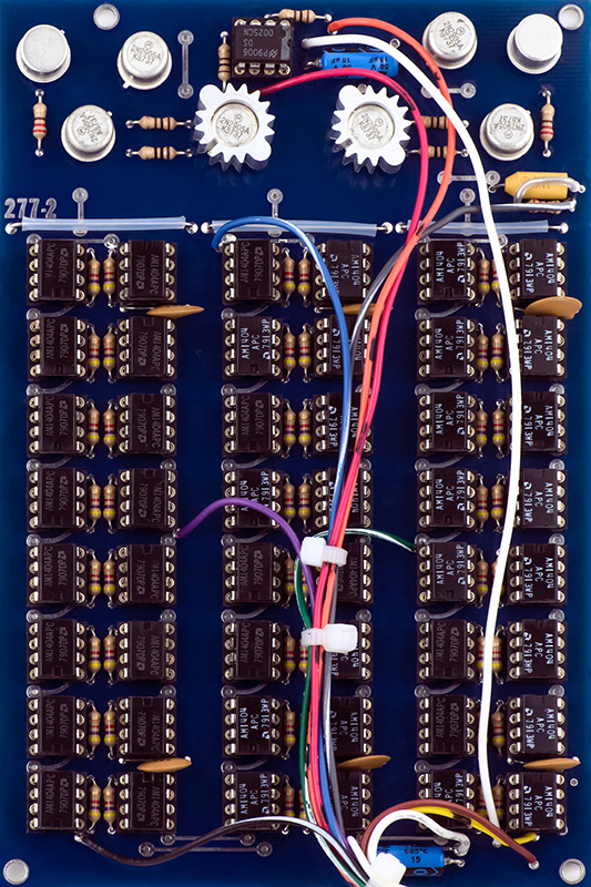 The modern clone 277 modules are built using digital signal processors. The 277, designed in 1972, was likely one of the first digital delay units. It uses 48 1024 bit shift registers to provide a delay from 50 mS to 200 mS as indicated by the panel legends.