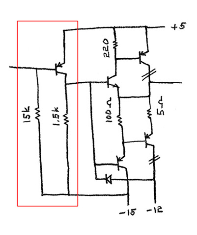 The first issue I noted is the current for the switching transistor Q16 exceeds the source capability of a 7400 gate. The schematic also shows this shorted to +5V. I suspect Don added a pullup resistor and a 3K resistor is within the sink capability of the 7400 and provides some additional source current.