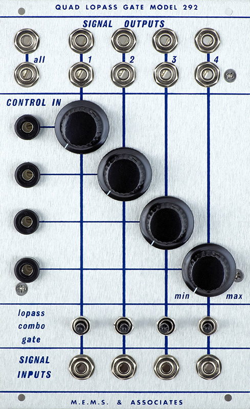 The 292M Quad Lopass Gate is the B version which uses hardwired switches instead of CMOS switches so does not include the remote capability. This module also has the M.E.M.S & Associates panel.