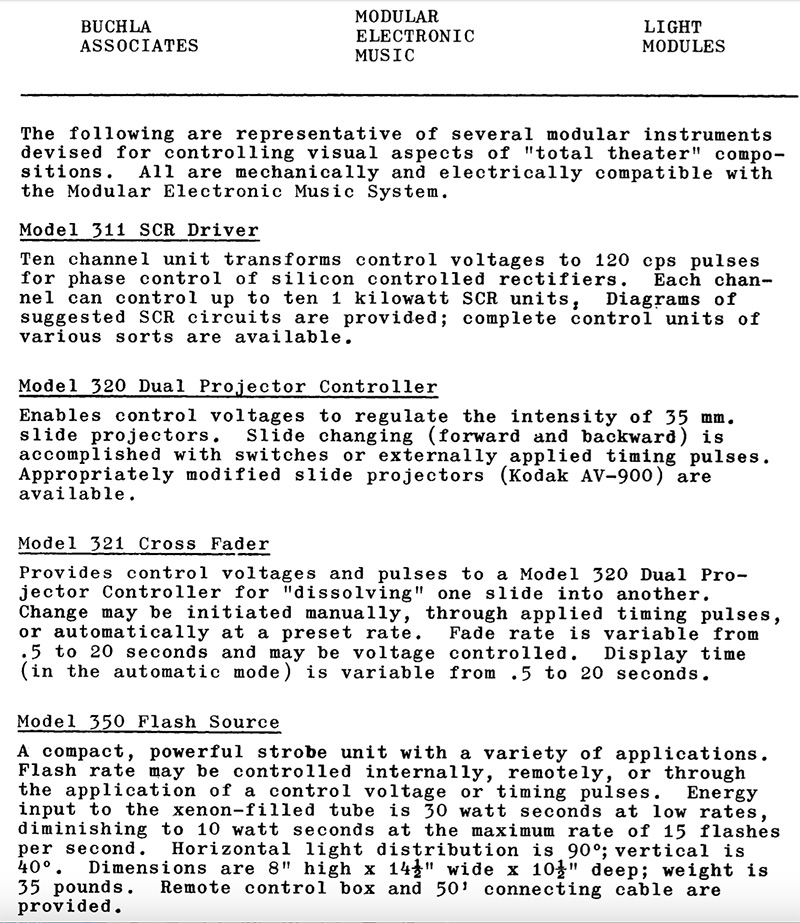 The 350 is one of several of Don's light modules. This portion of a catalog describes the 350 and these related modules.