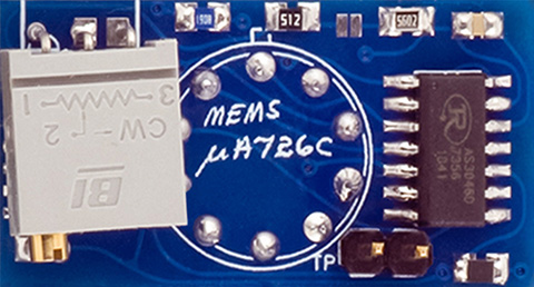 Several of Don's VCO designs use the µA726 temperature controlled exponential pair. These are now rare and hard to find. MEMS designed a replacer PCB which works in all of their modules. It consists of a AS3046 transistor array with transistors used for the exponential pair, chip temperature sensor, and heater.