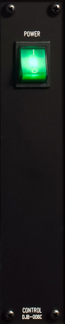 This is a combination module with three distinct functions. First it is an illuminated AC power switch that controls all my main cabinets. This module is used in conjunction with the DJB-007 module for AC mains. The DJB-007 module mounts on the rear of all my cabinets.