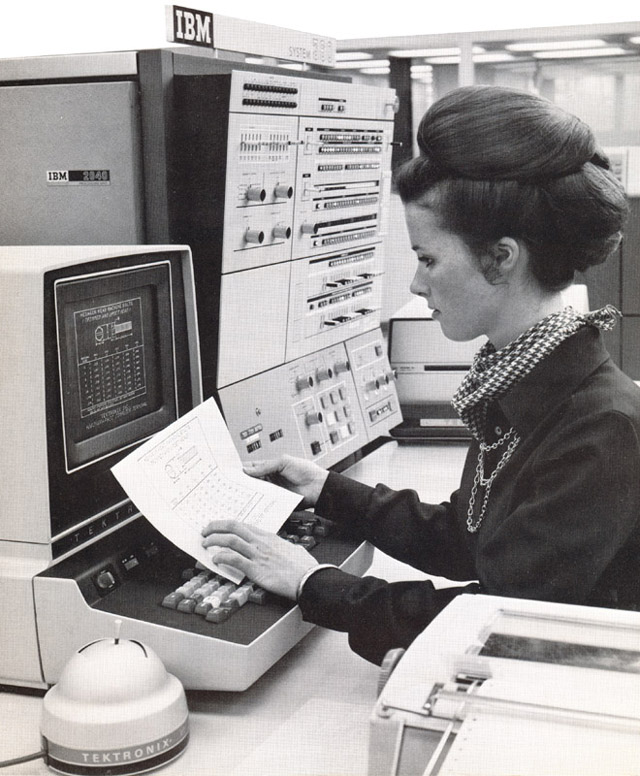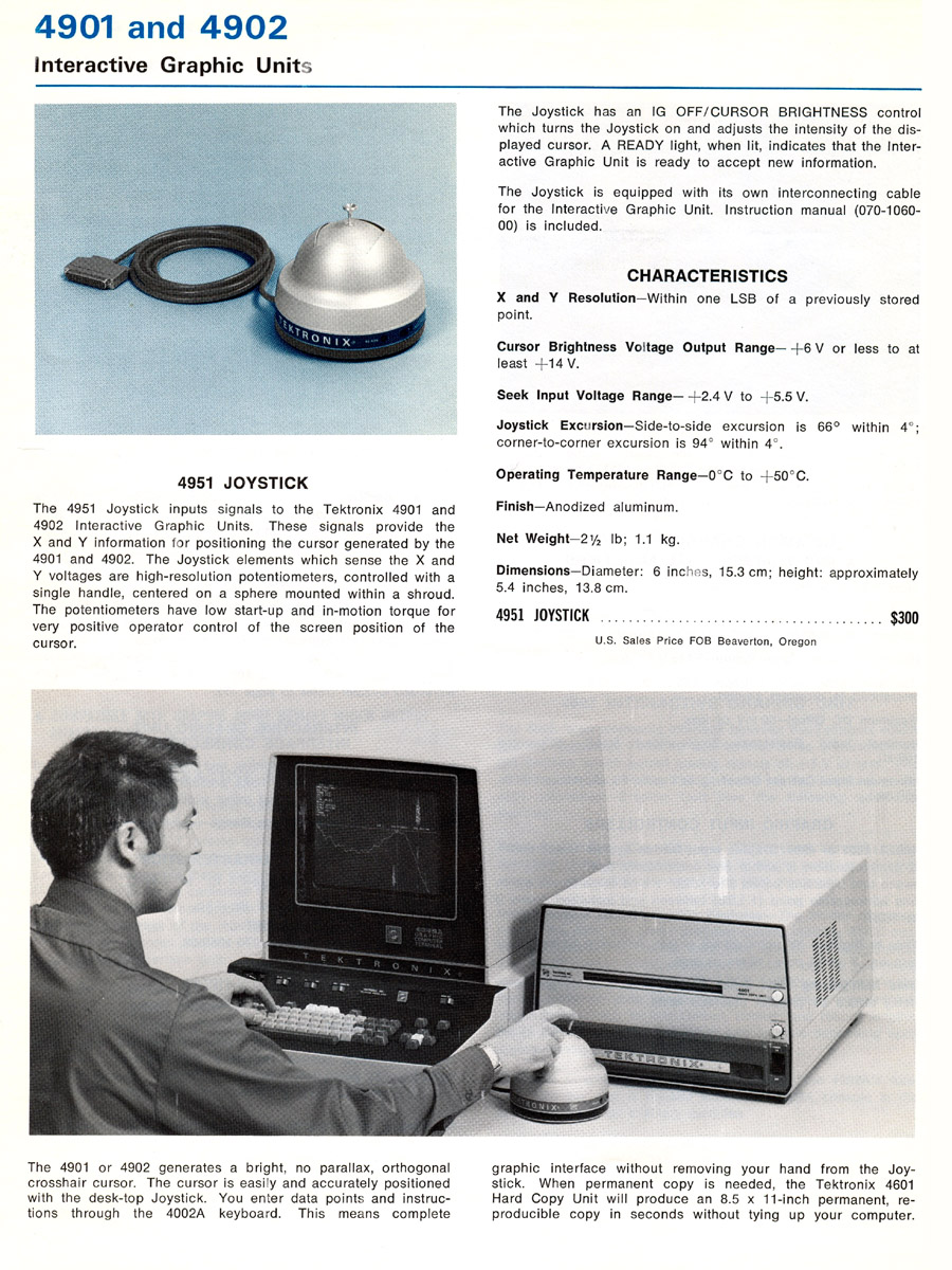 Here is a 1971 Tektronix advertisement of a T-4002 Graphic Computer Terminal with a 4951 Joystick interfaced to an IBM 360 computer.