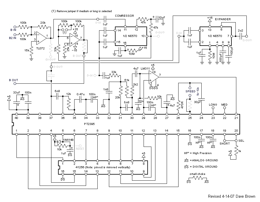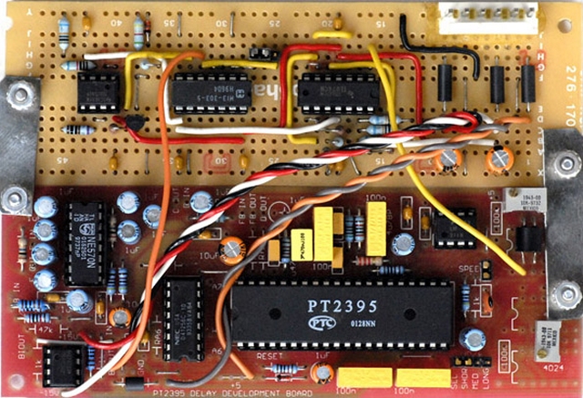 I like the short setting best although overall performance doesn't degrade much with either the medium or long delay settings. The output level of the PT2395 is attenuated when either medium or long is selected so I added a jumper to increase the output gain for these settings.