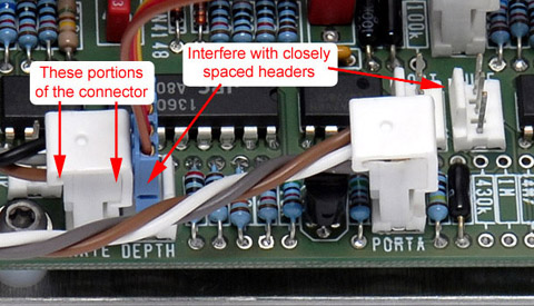 The MTA connectors have a wider top than base so there must be adequate clearance around the PCB header. If there is limited space I have to use the FCI mini-latch connectors which require crimping the individual wires and inserting them into the header.