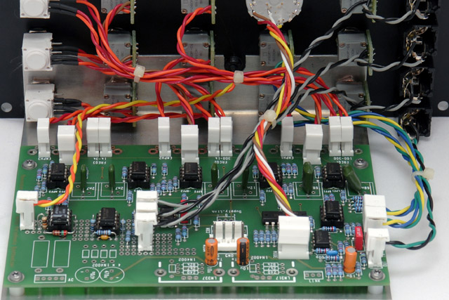After washing, I add trimmer resistors, switches, polystyrene capacitors, wiring, and other non-washable components. I use left over MOTM Kester 245 no-clean .031" (0.8mm) diameter solder #24-6337-8802 which can also be bought at Mouser. I use the larger core since this solder is typically used for switches, potentiometers, and wires..