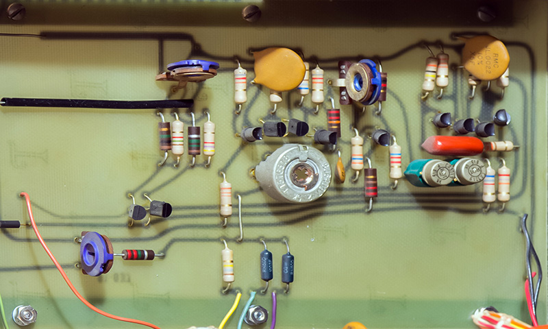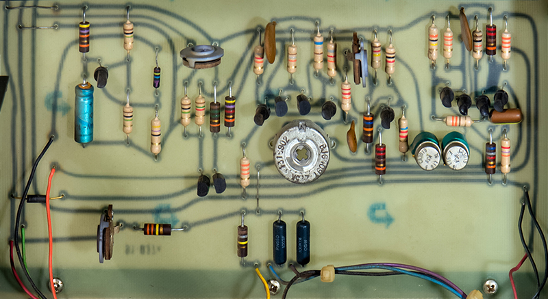 This later PCB-2 (1969 IC date code) incorporates the flying resistors onto the PCB.